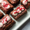 Our delicious Raspberry and Dark Chocolate Brownie slice made with raspberry and Belgian chocolate, cut into slices and topped with cream cheese and freeze dried raspberries. A perfect dessert to serve to guests. (16 serves)