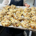 For the month of November we are baking a limited edition Hazelnut & Orange bun. This bun features cinnamon and cardamom rolled throughout the dough with a cinnamon butter filling. Finished with a hazelnut and orange flavoured glaze and topped with hazelnuts.